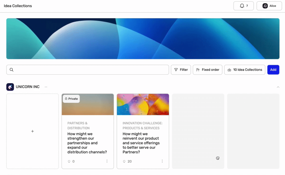 N'oubliez pas que les collectes d'idées sont privées tant qu'elles ne sont pas partagées avec d'autres. Partagez-les et incluez vos collègues lorsque vous êtes prêt !