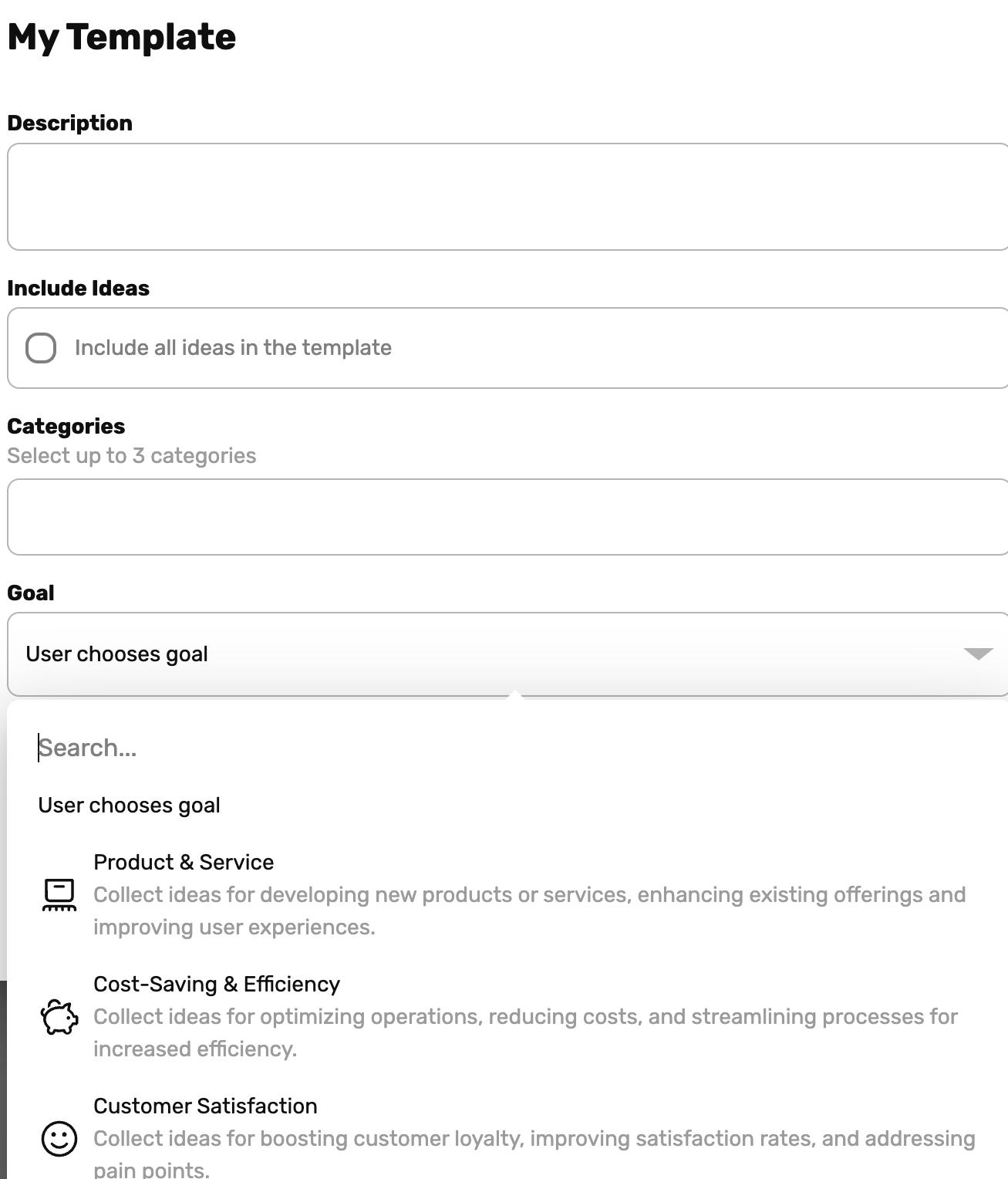 De plus, vous avez la liberté de créer et de personnaliser vos propres modèles sans effort en convertissant n'importe quelle collecte d'idées de votre espace de travail en un modèle personnel, partagé avec la communauté ou à l'échelle de l'espace de travail.