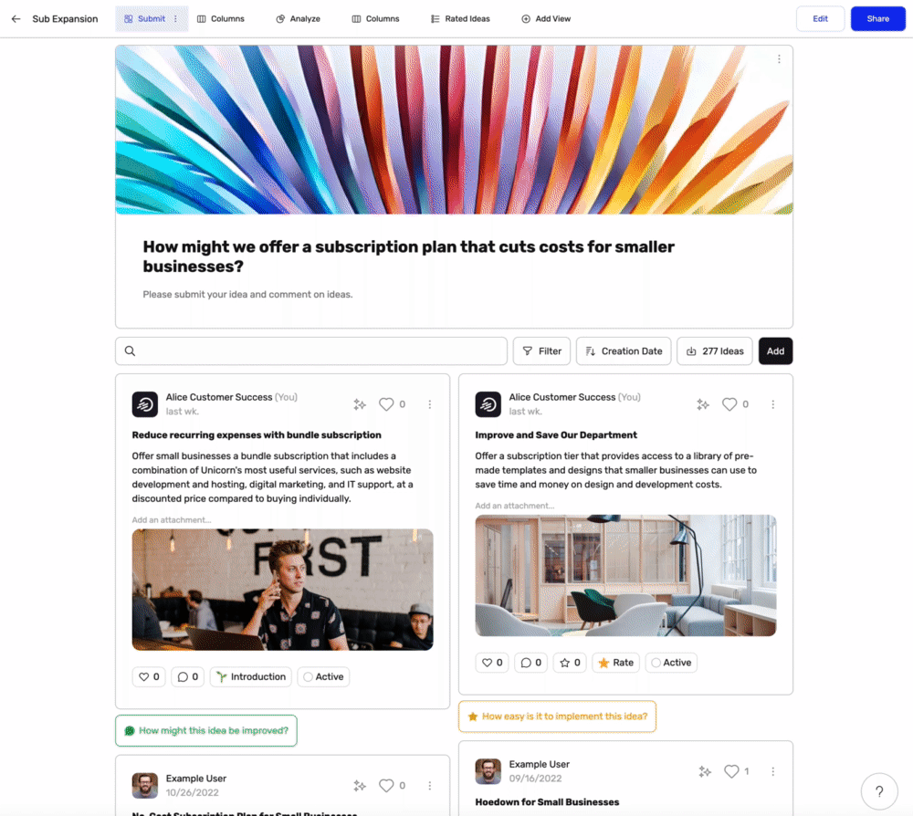 Les widgets sont un excellent moyen de créer un élan et de générer de l'intérêt autour de vos collectes d'idées.