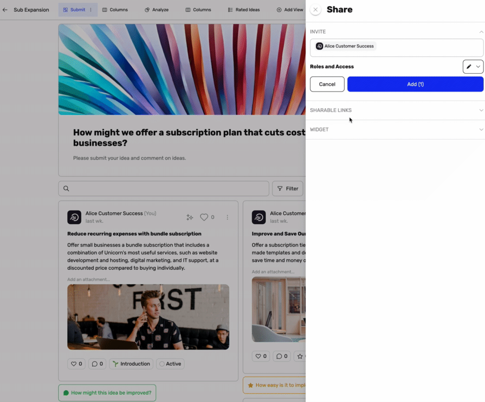 - Idea Collections' Shareable Links let people access an Idea Collection and create ideas by becoming guests of the workspace.