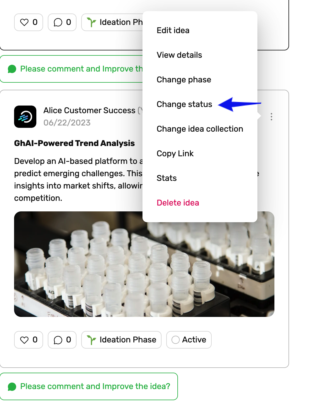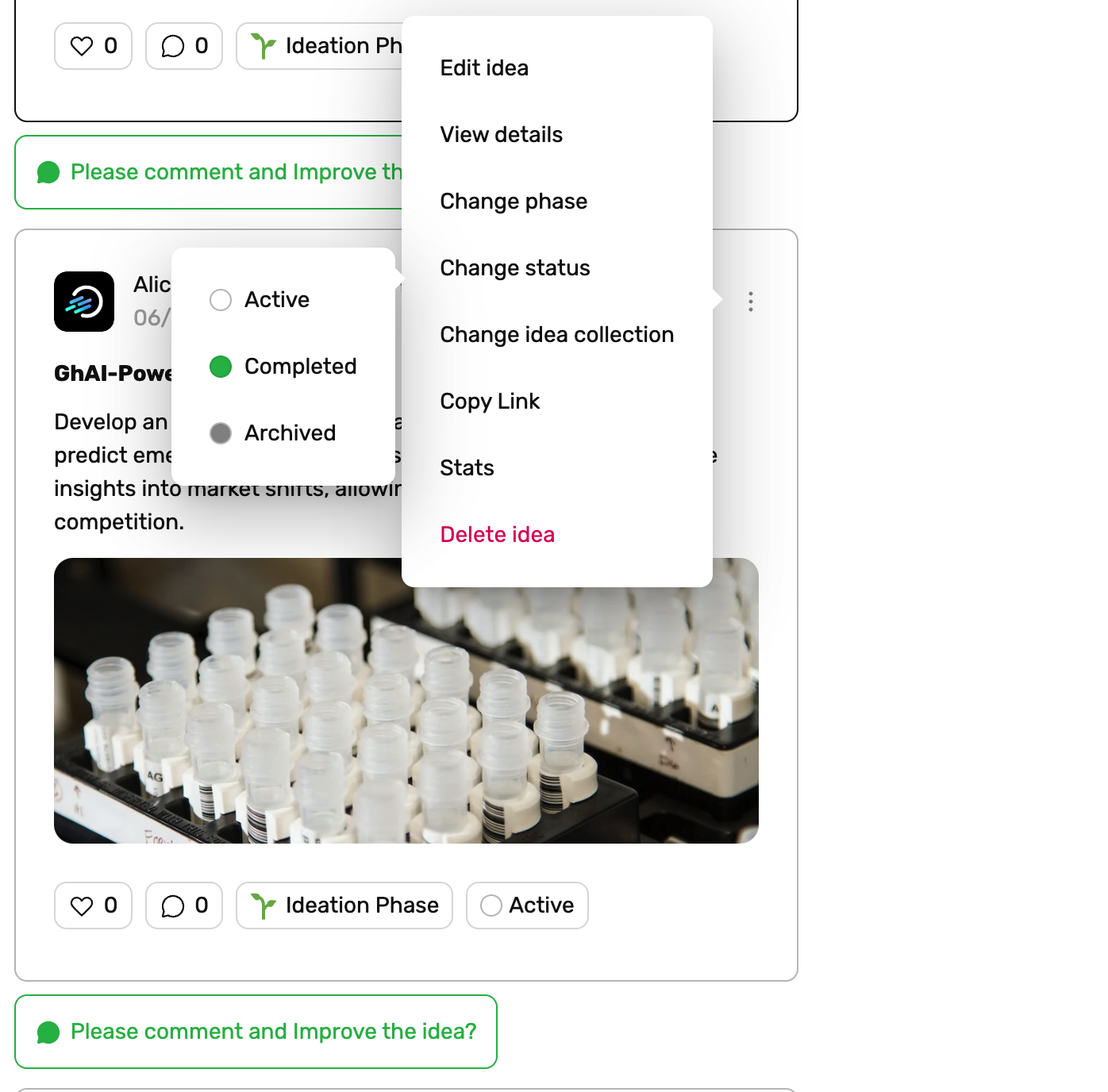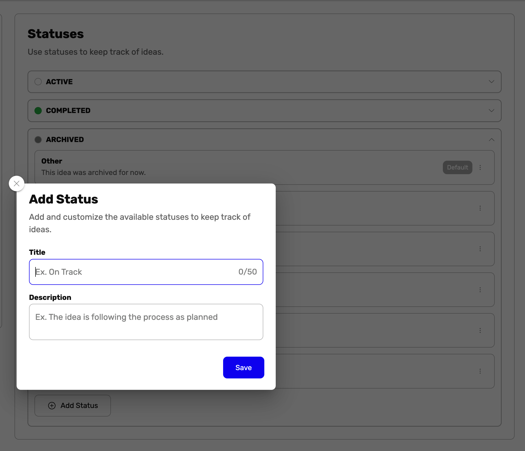 Whether they are Active, Completed, or Archived, you are in full control of each idea's status and can tailor the meaning of each status, aligning them perfectly with your organization's unique processes.