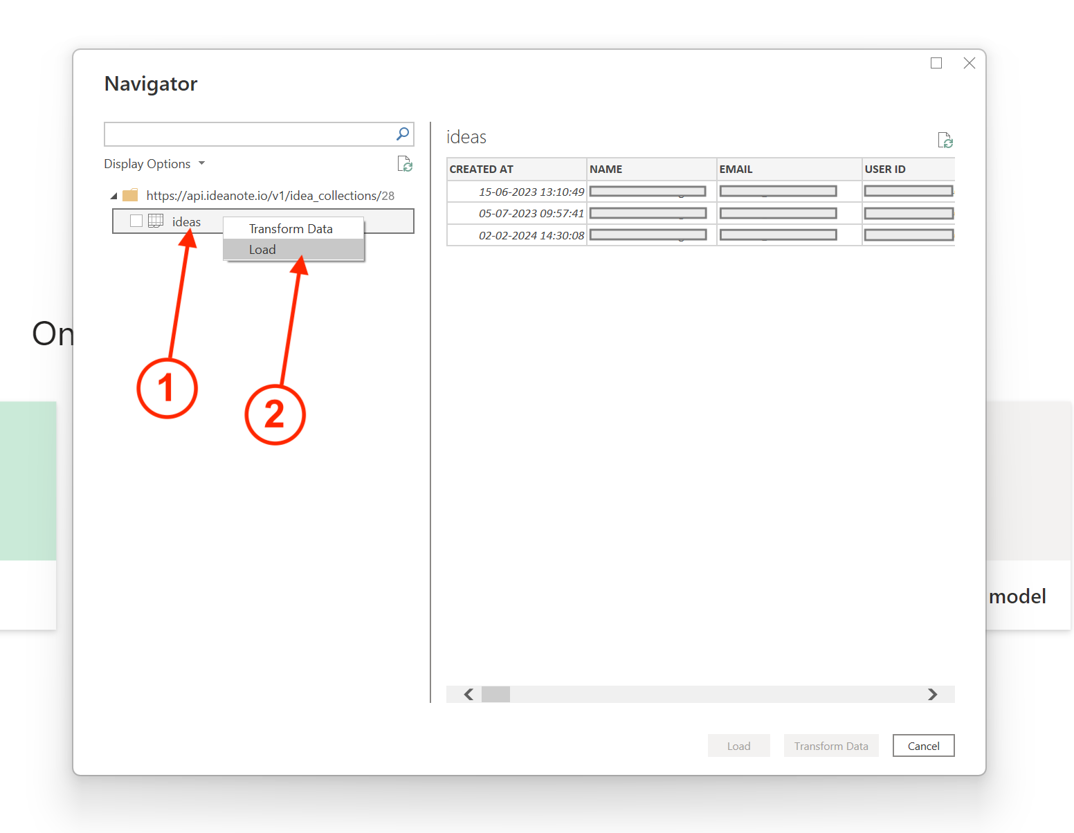 4) We recommend that you perform one last manual refresh following step 10 in the ‘Setting up Ideanote as a data source inside PowerBI’ guide above to make sure everything looks correct.