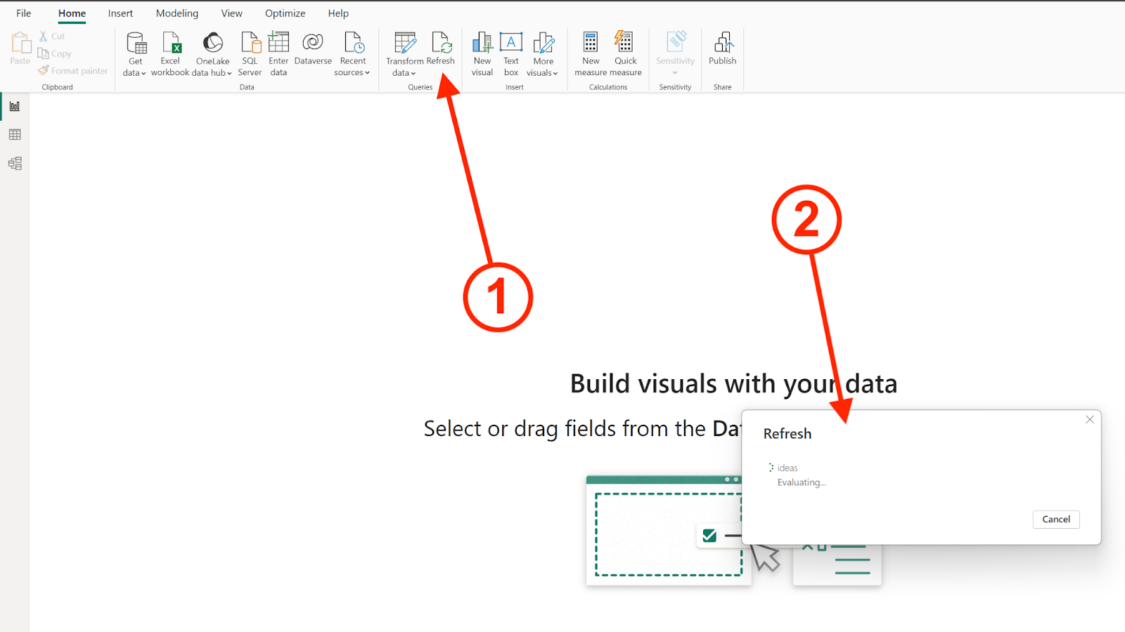 1.10) The Power Query Editor will close and take you back to your report. The data source will be refreshed once by PowerBI, and after that you’ll be ready to proceed with Step 2.