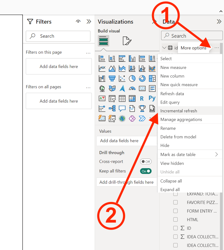 2.2) Click ‘Incremental refresh’ in the dropdown menu that appears below it.