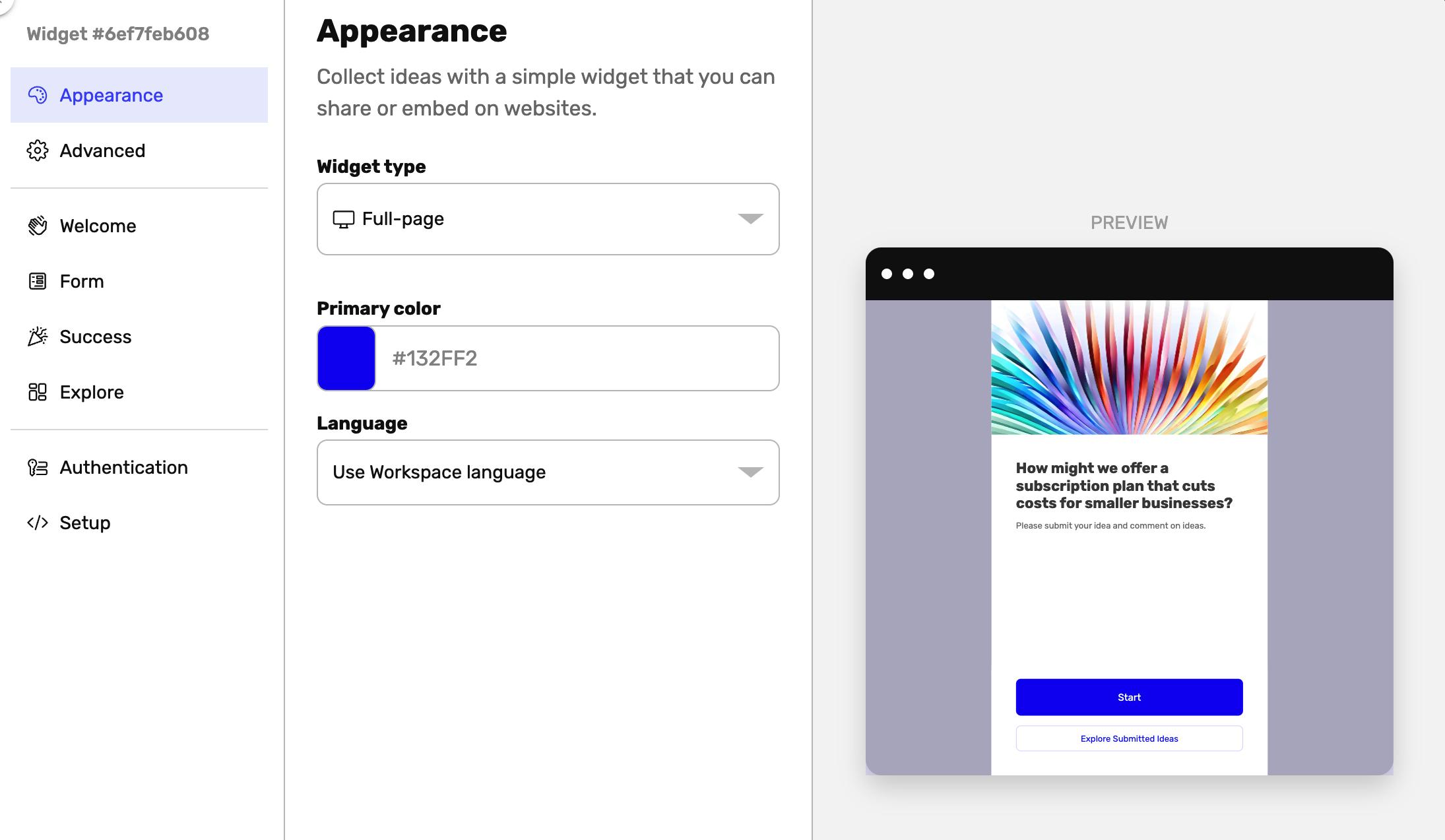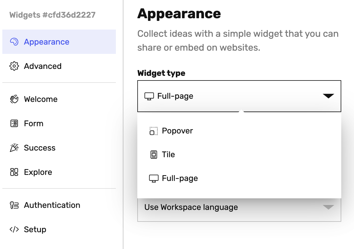 Full Page Widgets use URLs hat you can share with users so they can submit ideas on any device.